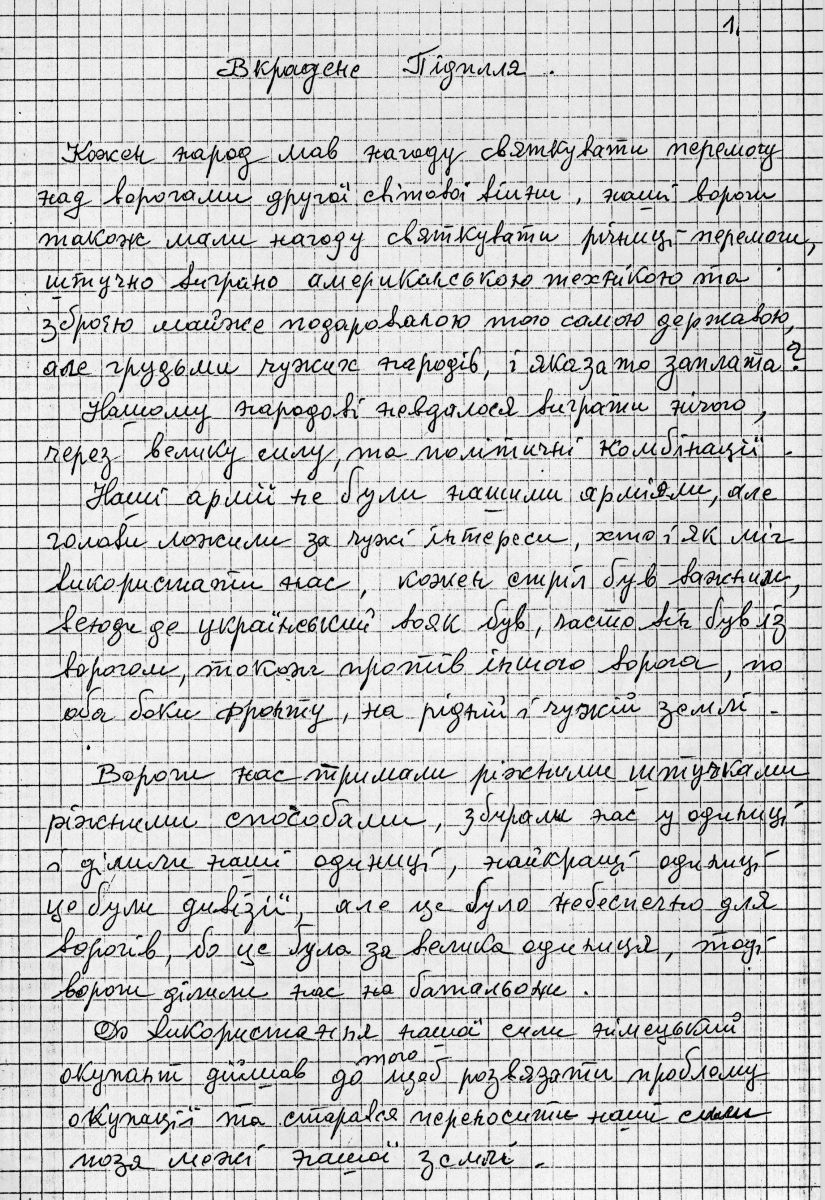 Я не считаю нужным раздувать страсти по поводу исторического «коллаборационизма» наших предков во времена Второй мировой войны в современной постколониальной Украине, где государство даже не попыталось провести деколонизацию, где 99,9% населения до 1991 года были коллаборационистами по отношению к преступному российскому коммунистическому режиму, и даже сейчас весьма значительная часть населения Украины ментально считает себя гражданами «русскаго мира», а не украинского государства. В демократической Украине каждый должен нести ответственность за свои личные поступки или преступления, а не по факту ношения чьей-то униформы или выполнения каких-то функций, поскольку принцип коллективной ответственности присущ только тоталитарным обществам.